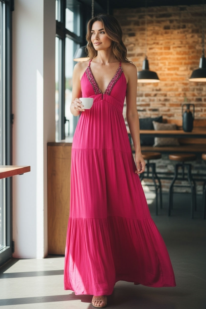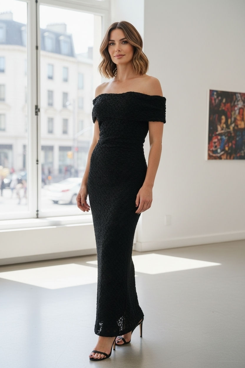 Robe longue en dentelle stretch